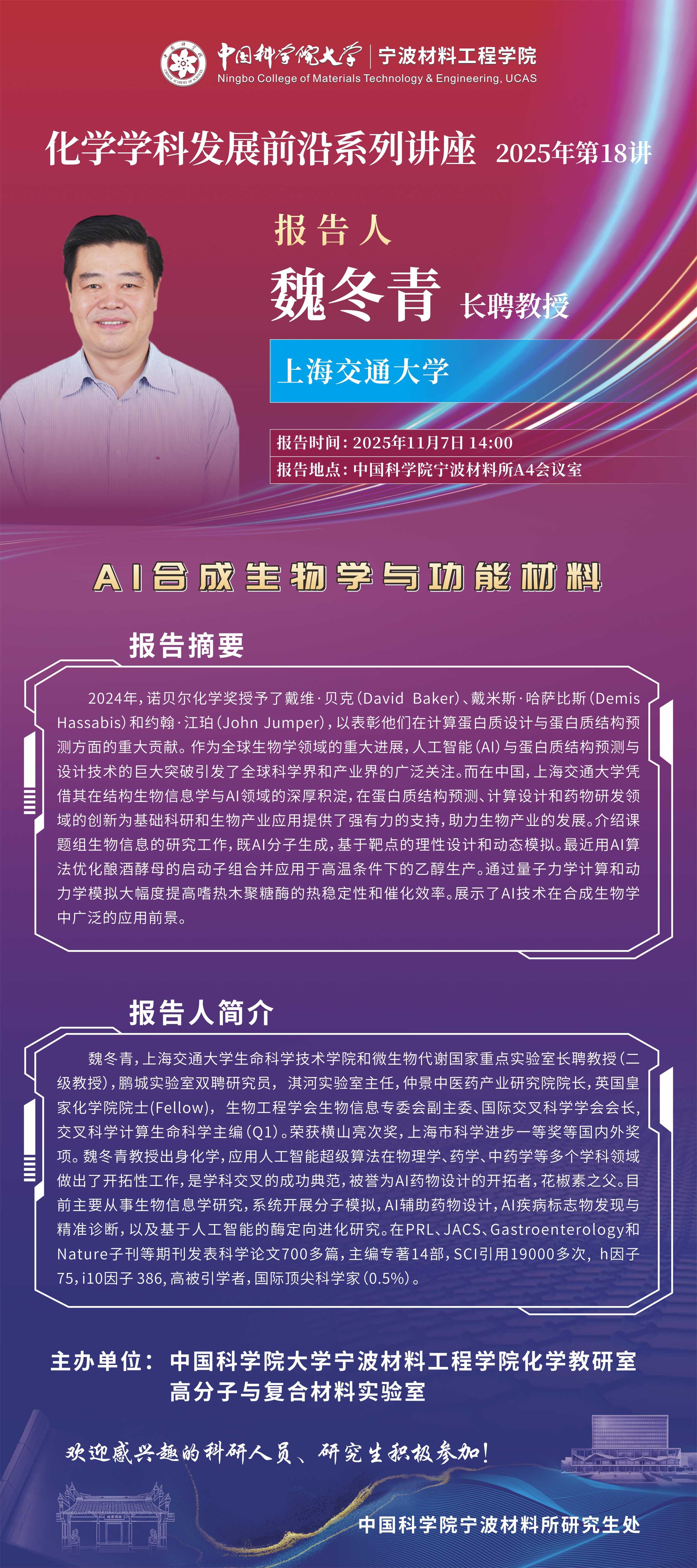 11月7日:魏冬青:AI合成生物学与功能材料