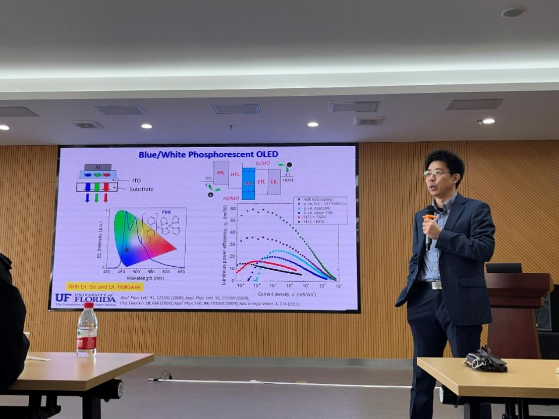 近日,美国佛罗里达大学材料科学与工程系终身正教授、中国科学院杭州医学研究所薛剑耿研究员作客光电实验室“光电卓见”系列学术交流,并做了题为《有机与纳米光电功能材料与器件——从能源、信息到生命健康》的专题报告,吸引了众多科研人员与研究生积极参与,现场学术氛围浓厚,讨论热烈。