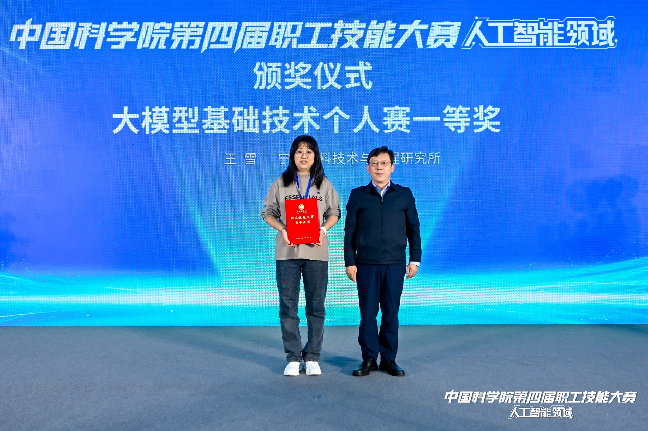 中国科学院第四届职工技能大赛人工智能领域大赛由中国科学院工会委员会主办、中国科学院自动化研究所等单位承办。比赛共设大模型基础技术个人赛和“AI+科学”团体赛两个赛道,分为初赛和决赛。接到大赛通知后,宁波材料所工会高度重视、积极响应,在全所科研团队中深入挖掘相关专业人才并积极动员、组织10名职工报名参赛,并落实服务保障。参赛队员凭借扎实的专业功底和出色的协作创新能力,一路过关斩将,9人进入决赛。
