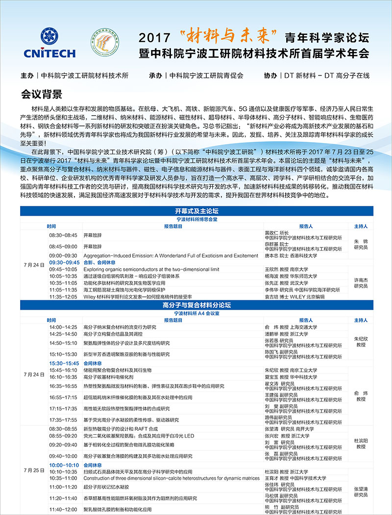 7月24-25日:2017“材料与未来”青年科学家论坛暨中科院宁波工研院材料技术所首届学术年会