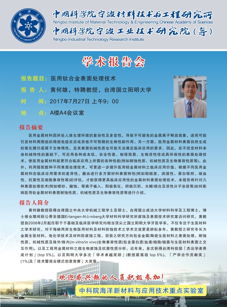 7月27日:黄何雄:医用钛合金表面处理技术