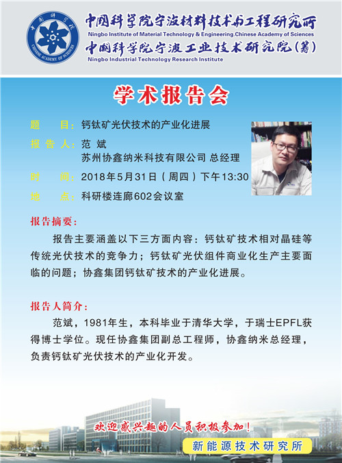 5月31日:范斌:钙钛矿光伏技术的产业化进展