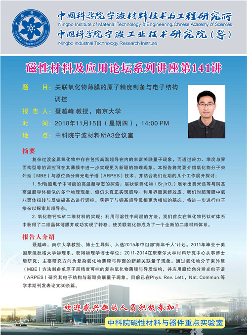 11月15日:聂越峰:关联氧化物薄膜的原子精度制备与电子结构调控
