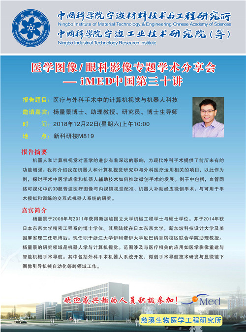 12月22日:iMED中国第三十讲:杨量景:医疗与外科手术中的计算机视觉与机器人科技