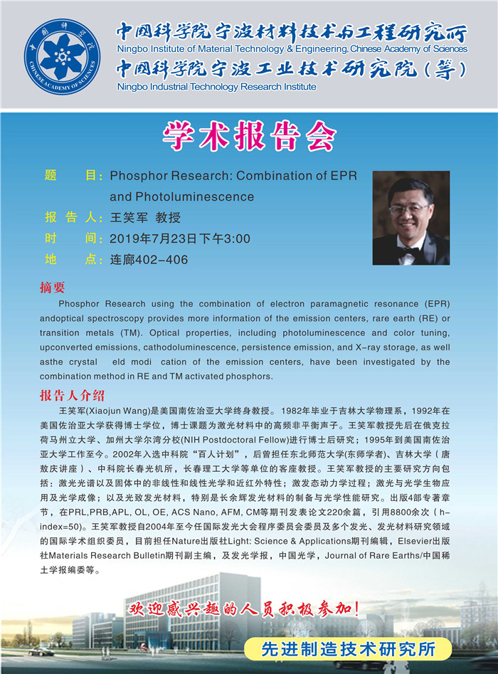 7月23日:王笑军:Phosphor Research: Combination of EPR and Photoluminescence