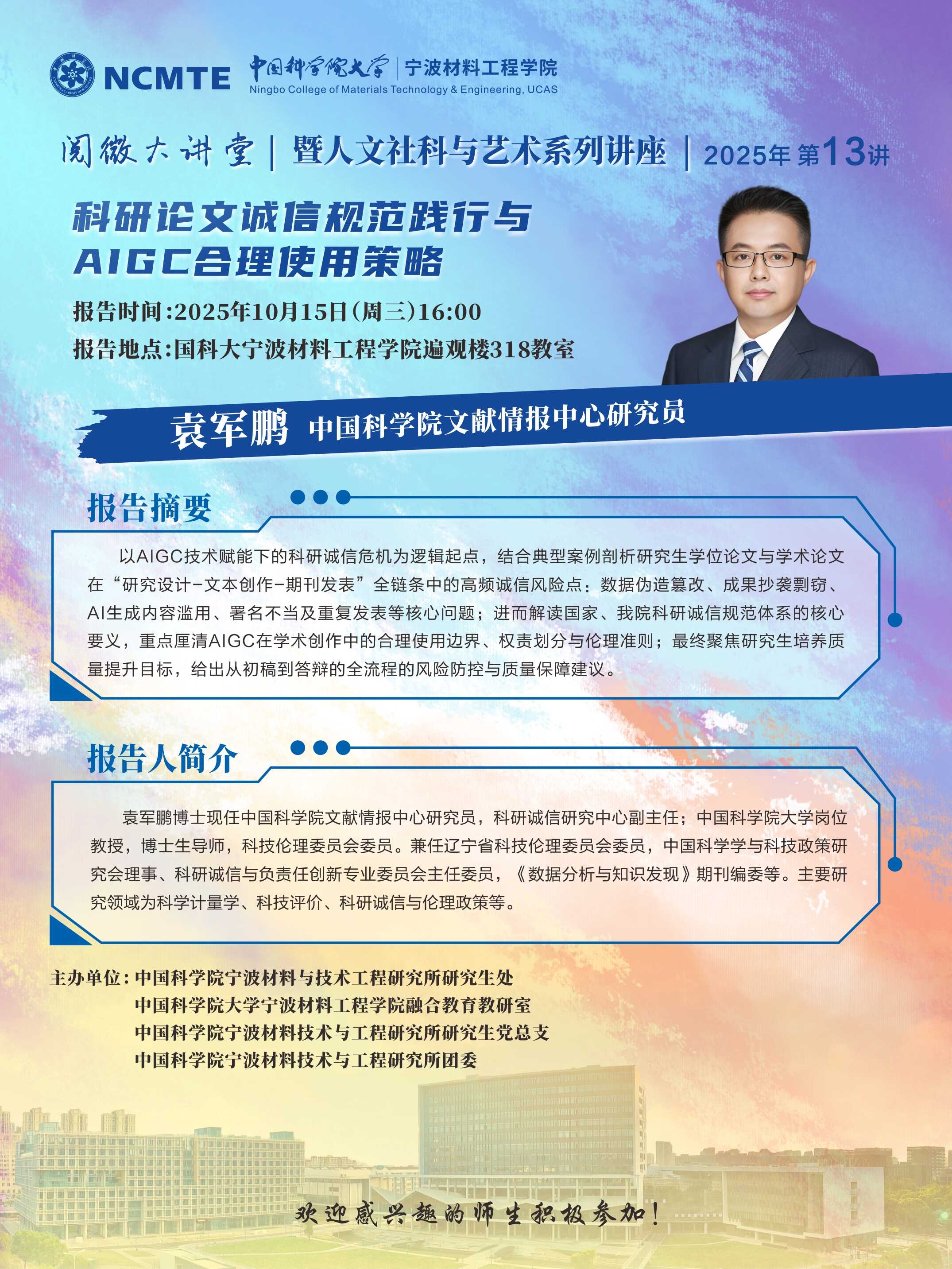 10月15日:袁军鹏:科研论文诚信规范践行与AIGC号理使用策略