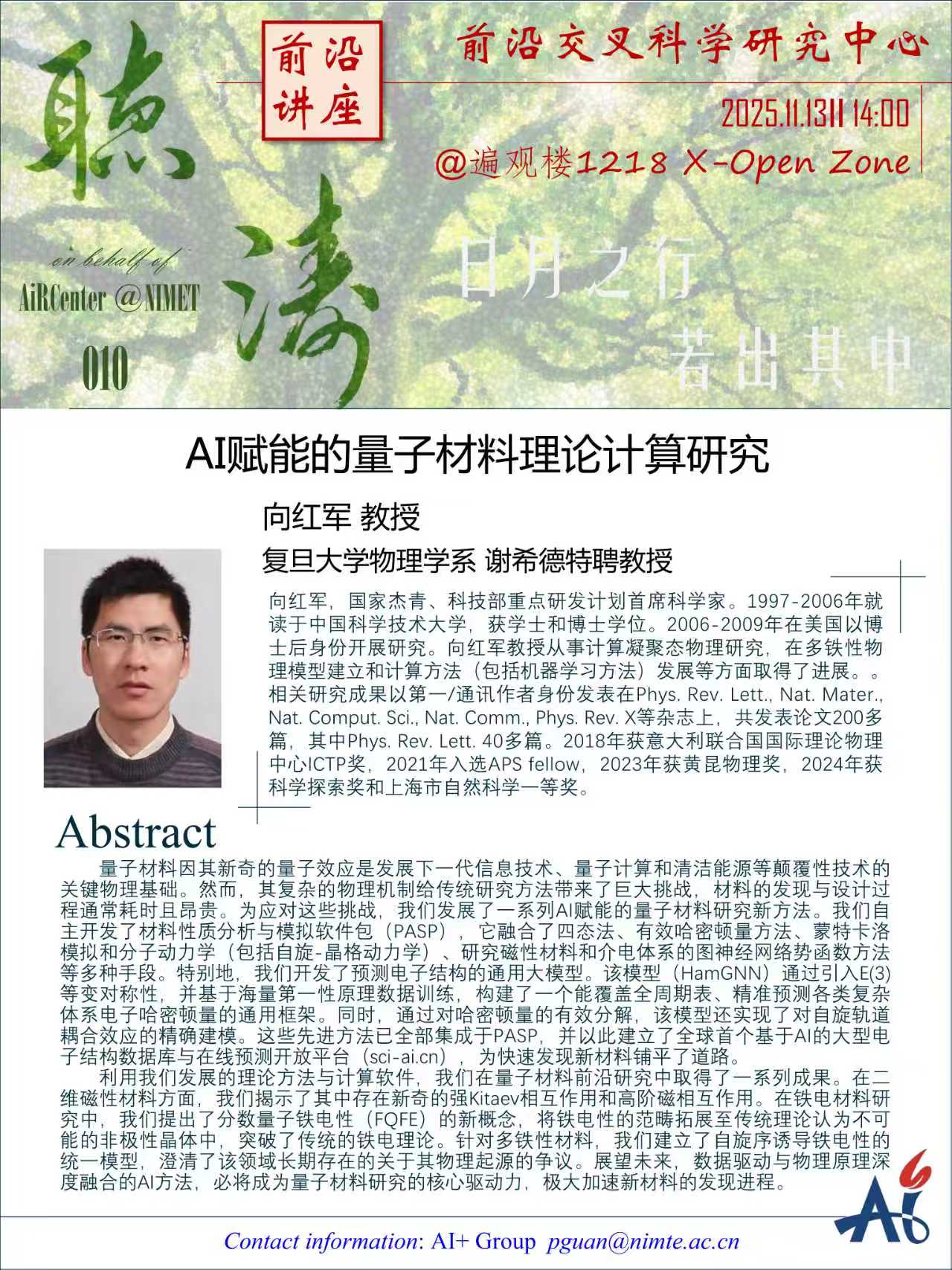 11月13日:向红军:AI赋能的量子材料理论计算研究
