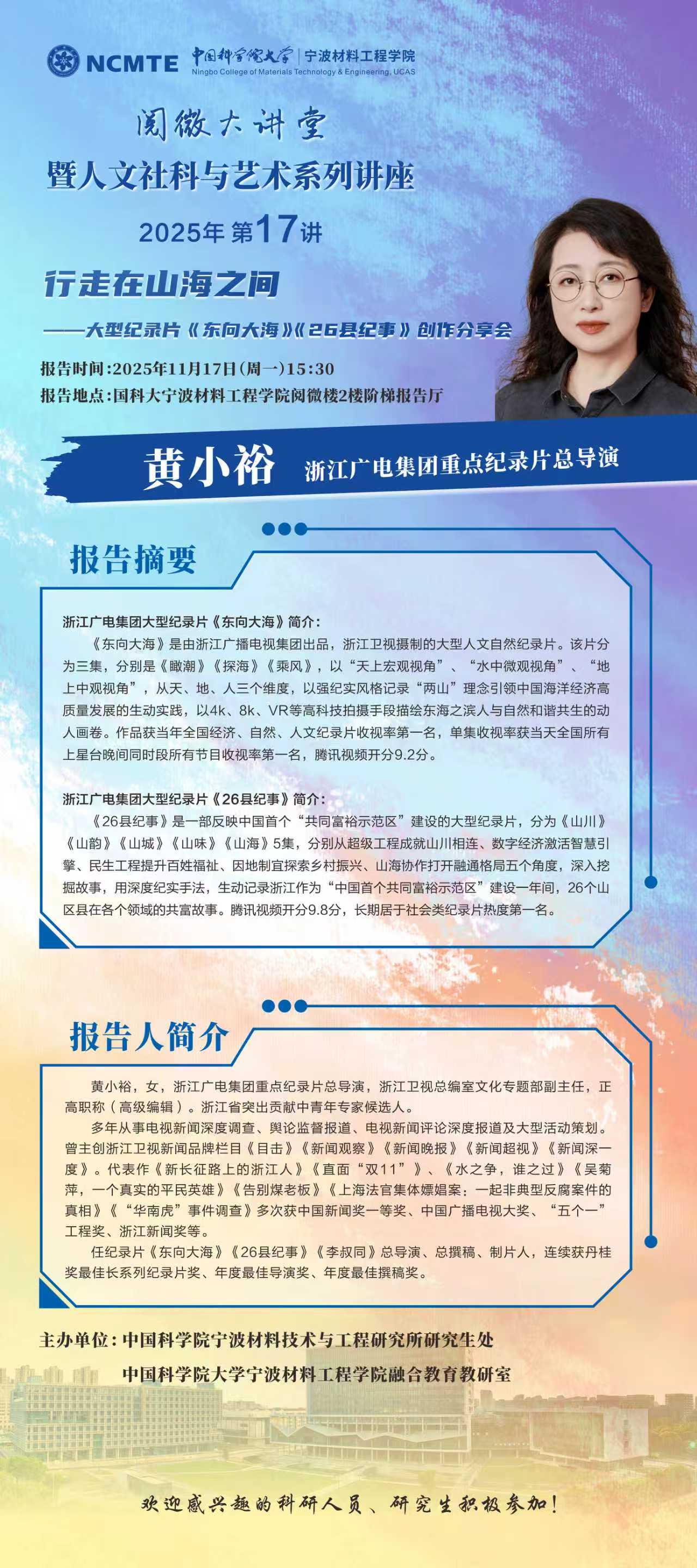 11月17日:黄小裕:行走在山海之间——大型纪录片《东问大海》《26县纪事》创作分享会