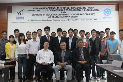 10月27日,韩国岭南大学材料科学与工程学院Sukyoung Kim和Younghwan Han教授访问宁波材料所,并同黄庆研究员课题组举行“1st Global Capstone Design Project Workshop between NIMTE and YU”交流活动。