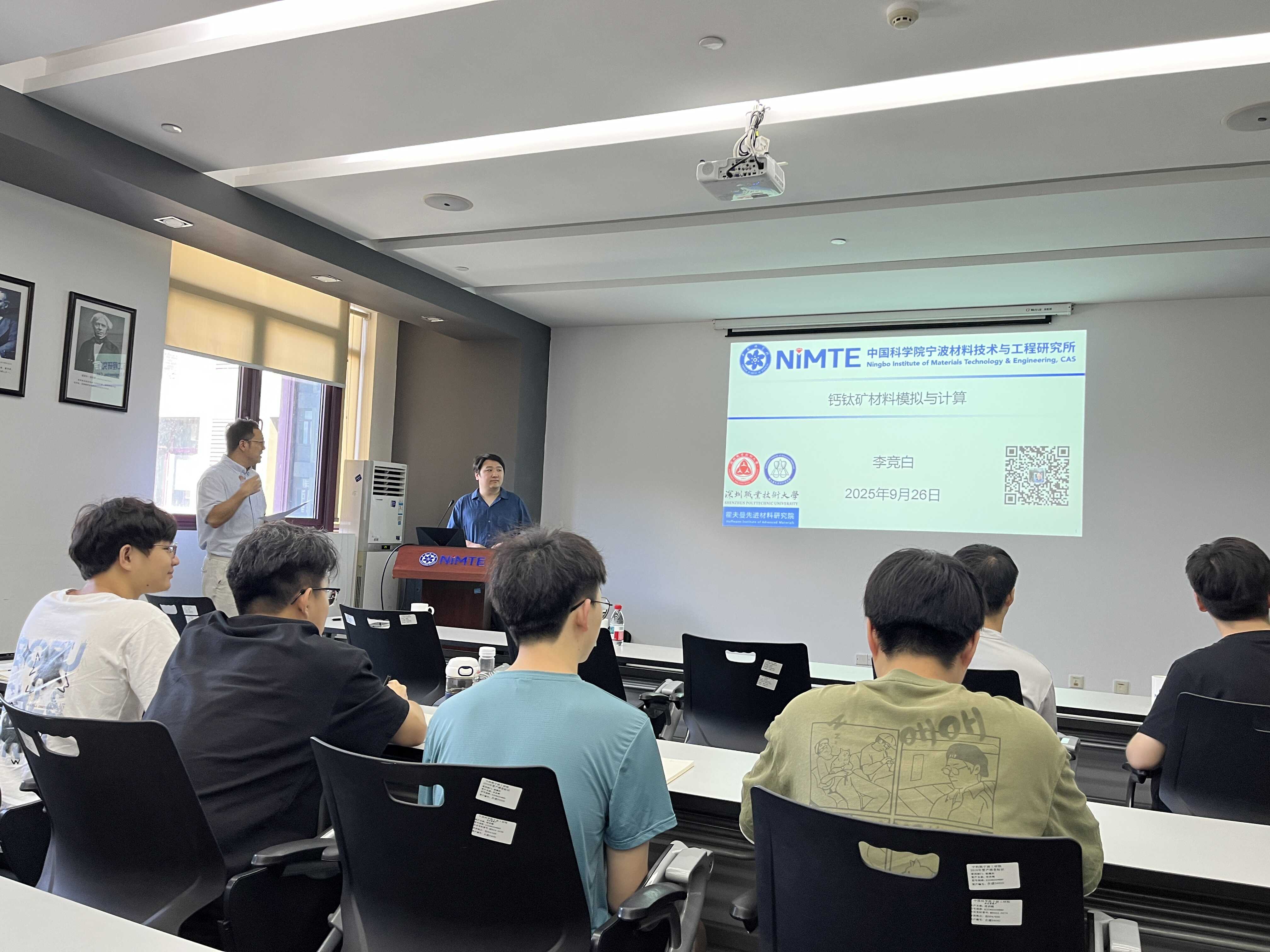 2025年9月26日,深圳职业技术大学李竞白副教授来访中国科学院宁波材料技术与工程研究所,作了题为《钙钛矿材料模拟与计算》的学术报告。