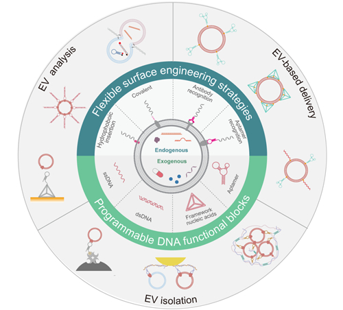 基于DNA纳米材料的细胞外囊泡表面工程化示意图