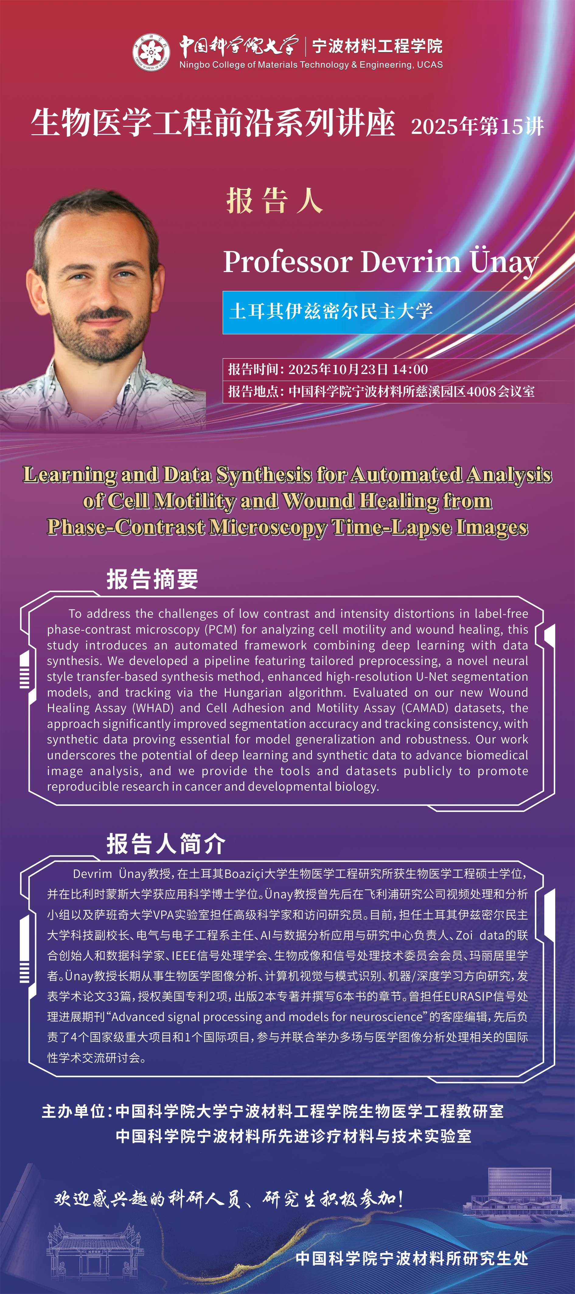 10月23日:Professor Devrim Ünay :Learning and Data Synthesis for Automated Analysis of Cell Motility and Wound Healing from Phase Contrast Microscopy Time-Lapse Images 发布:2025-10-20 点赞: 字号:小 大 打印: